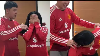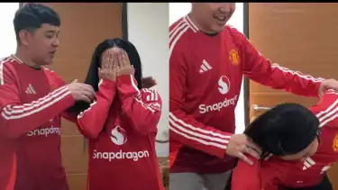 Donne Maula memaksa Yura Yunita untuk menggunakan jersey Manchester United.