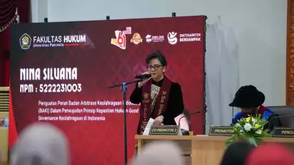 Nina Silvana resmi bergelar Doktor dalam sidang dengan judul disertasi Penguatan Peran Badan Arbitrase Keolahragaan Indonesia (BAKI) Dalam Perwujudan Prinsip Kepastian Hukum Good Governance Keolahragaan di Indonesia.