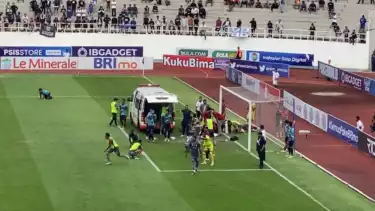 tvOnenews.com - Pemain Madura United, Ricky Ariansyah dilarikan ke rumah sakit setelah mencetak gol kemenangan atas PSIS Semarang di Stadion Jatidiri, Semarang, Selasa (7/3/2023).