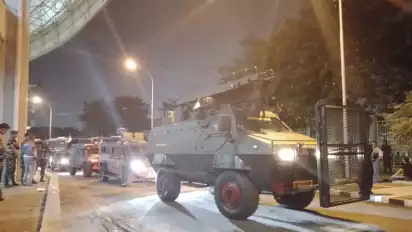 Para penggawa tim Maung Bandung datang naik rantis dengan sejumlah pengawalan ketat. Terpantau beberapa pemain dan staf tim turun dari rantis termasuk pelatih kiper Persib Bandung, Luizinho Passos.