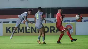 Tembakan Alta Ballah yang sempat membawa Persebaya unggul 1-3. Sebelum akhirnya disamakan Messidoro di menit akhir. Foto: Dok Persebaya.