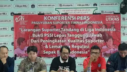 tvOnenews.com - Komunitas suporter yang menamakan diri Paguyuban Suporter Tim Nasional Indonesia (PSTI) menyayangkan regulasi baru Liga 1 2023/2024 soal suporter.