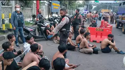 Pekalongan, Jawa Tengah - Polres Pekalongan Kota, Jawa Tengah, mengamankan puluhan suporter sepakbola Persip Pekalongan beserta puluhan sepeda motor, pasca aksi pengrusakan dan penganiayaan pedagang angkringan di perbatasan Kota.