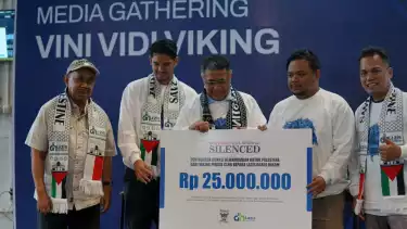 Pada kesempatan itu, Viking pun menyerahkan donasi untuk Lazis Darul Hikam sebesar Rp25 juta bagi masyarakat Palestina.