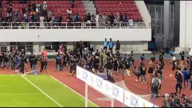 Semarang, tvOnenews.com - Panitia Pelaksana (Panpel) mengungkapkan pemicu kerusuhan antara suporter PSIS Semarang dengan pendukung dari PSS Sleman saat pertandingan berlangsung di Stadion Jatidiri Kota Semarang, Minggu (3/12/2023).