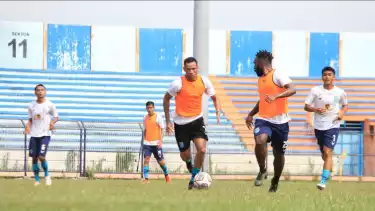 Jose Wilkson mengikuti latihan perdananya di di Stadion Surajaya, Lamongan.