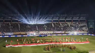 Berkumpulnya para penari dan pembawa bendera yang dibarengi dengan bentangan bendera merah putih menandakan berakhirnya opening ceremony Liga 1 2024/2025.