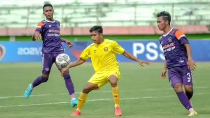 Sleman, DIY - Mataram Utama FC gagal meraih kemenangan pada babak 16 besar Liga 3 Nasional di Stadion Gelora Delta, Sidoarjo, Jawa Timur, Senin (7/3/2022). Melawan PSGC Ciamis, tim berjuluk Young Mataram itu harus puas berbagi skor imbang 1-1.