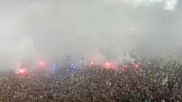 Sayang, perayaan itu harus dihiasi dengan banyaknya suporter yang menyalakan flare hingga petasan yang membuat GBLA seperti membara.
