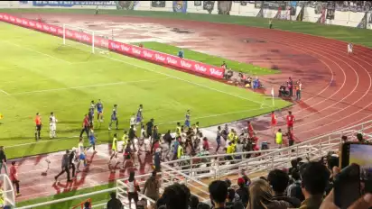 Beberapa pemain dari kedua tim terlihat saling dorong hingga memancing perhatian wasit dan ofisial pertandingan.
