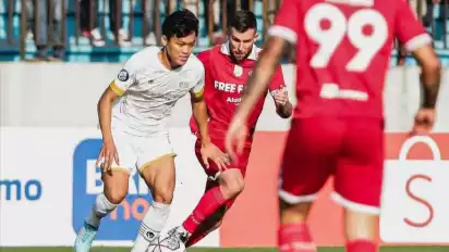 Pertandingan berjalan dengan sangat sengit. Baru saja dua menit berjalan, Dewa United sudah unggul dengan skor 1-0.