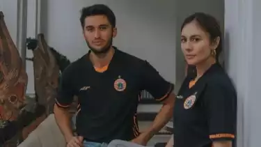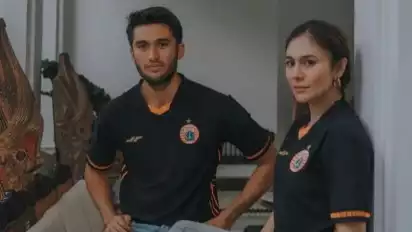 Dalam unggahan baru-baru ini, pasangan beda usia 15 tahun itu tampil sporty dengan memakai offical jersey Persija Jakarta. Mereka serempak mengenakan atasan dominasi warna hitam dan sedikit oren, kemudian celana jeans, dilengkapi sepatu sneakers.