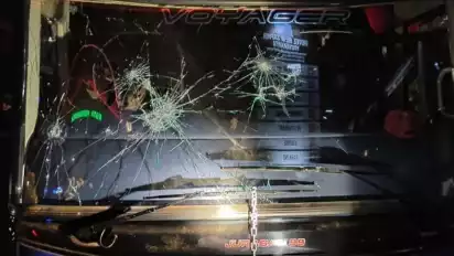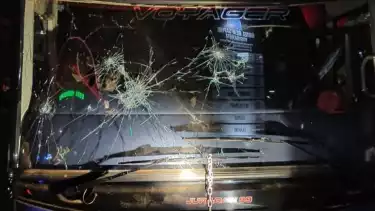 Kemudian, tampak dari rekaman video itu beberapa oknum suporter langsung melemparkan batu ke arah bus sehingga kaca samping pecah.
