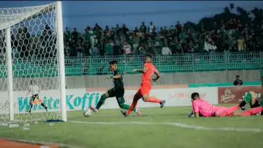 Babak kedua baru berjalan enam menit, tendangan kanan pemain Borneo FC Umanailo masih mampu ditepis Ernando