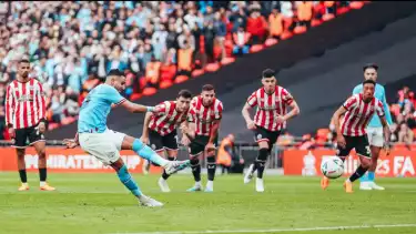 tvOnenews.com - Manchester City lolos ke babak final Piala FA usai mengalahkan Sheffield United di Stadion Wembley, London, Sabtu (22/4/2023). Tak tanggung-tanggung Manchester City menang dengan skor 3-0 dari hattrick Riyad Mahrez.