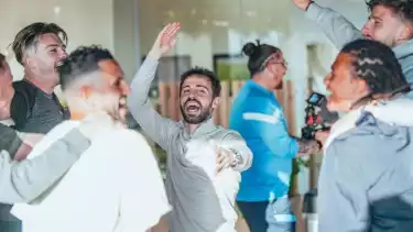 3. Skuad saling berpelukan untuk mengungkapkan rasa bahagianya