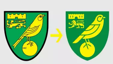 Desain logo terbaru Norwich, yang dikerjakan agensi digital SomeOne, juga menempatkan bola yang ditenggeri burung kenari diletakkan menjadi lebih ke tengah perisai untuk menciptakan keseimbangan.