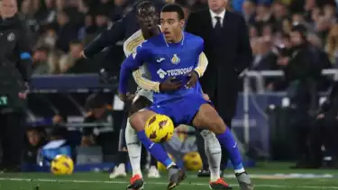Penyerang Getafe, Mason Greenwood (kostum biru)