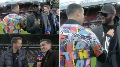 Louis Saha dan Jamie Redknapp bekerja sebagai komentator pertandingan di Sky Sports bersama Gary Neville. Tapi Cristiano Ronaldo yang sedang melintas untuk masuk dan melakukan pemanasan di lapangan hanya memeluk Saha dan Redknapp tapi mengabaikan Gary Neville.