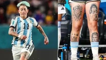 tvOnenews.com - Pemain Timnas Putri Argentina, Yamila Rodriguez memilih memasang tato Cristiano Ronaldo ketimbang Lionel Messi di bagian kakinya.