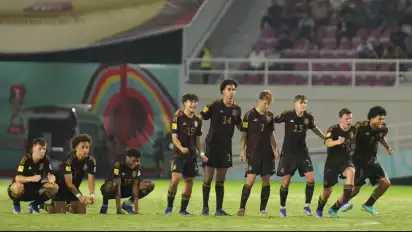 Jerman melenggang ke partai puncak yang diraih secara dramatis setelah memenangkan adu penalti dengan skor 4-2 seusai bermain imbang 3-3 pada waktu normal di Stadion Manahan, Solo, Selasa.