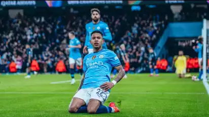 Sempat tertinggal dari gol Raphael Onyedika, Manchester City susah payah mengunci klasemen setelah comeback tiga gol di babak kedua.