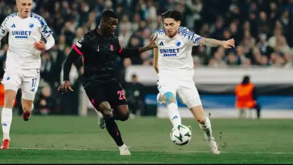 Bek milik FC Copenhagen itu harus mengalami kesakitan akibat terkena tekel Cole Palmer hingga klubnya tersingkir dari kompetisi Europa.