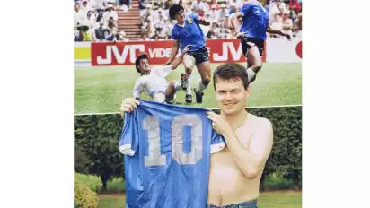 Dan mantan pemain Inggris, Steve Hodge, bangga telah menyimpan kostum Maradona dari pertandingan di Stasion Azteca, Mexico.