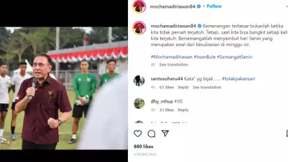 “Kemenangan terbesar bukanlah ketika kita tidak pernah terjatuh. Tetapi, saat kita bisa bangkit setiap kali kita terjatuh. Bersemangatlah menyambut hari Senin yang merupakan awal dari kesuksesan di minggu ini,” tulis Iwan Bule di akun Instagram-nya pada Senin (05/09/2022) pagi.