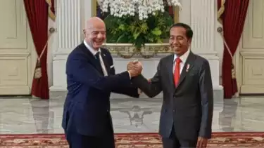 Presiden FIFA Gianni Infantino tiba pukul 11:58 WIB di Istana Merdeka, Jakarta. Menteri Pemuda dan Olahraga (Menpora) Zainudin Amali dan Menteri BUMN Erick Thohir menyambut Infantino di tangga Istana Merdeka sebelum bertemu langsung dengan Presiden Joko Widodo.
