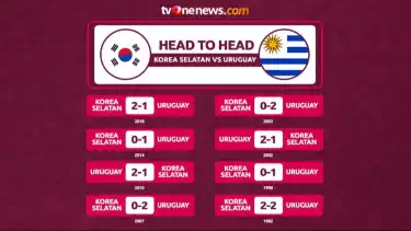 - Sebelum di Qatar 2022, dua negara sudah sering berjumpa. Dari delapan pertandingan, Uruguay menang enam kali, termasuk dua kali pada Piala Dunia 1990 dan 2010. Korea hanya menang satu kali dalam pertemuan terakhir berupa pertandingan persahabatan pada 2018.