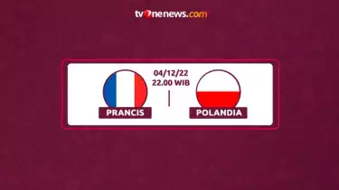 Pertandingan Prancis dan Polandia pada putaran 16 Piala Dunia 2022 akan berlangsung pada Minggu petang, 04 Desember 2022, sesudah shalat Maghrib waktu Qatar. Penonton di Tanah-Air dapat menyaksikan siaran langsung mulai pukul 22:00 Waktu Indonesia Barat. (raw)