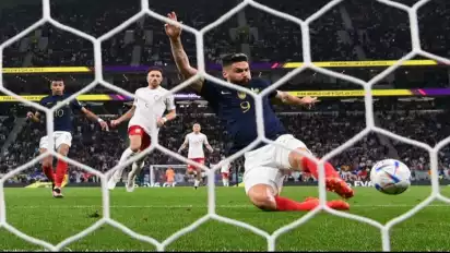Giroud meneruskan sodoran bola dari Kylian Mbappe di bawah kawalan ketat Kiwior untuk memasukkannya ke gawang Polandia pada menit ke-44.