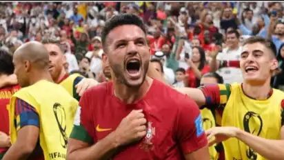 Selebrasi kemenangan dari pemain Portugal, Goncalo Ramos hattrick. (FIFA)