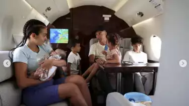 Ronaldo bersama keluarganya di jet pribadi (Instagram/georginagio).