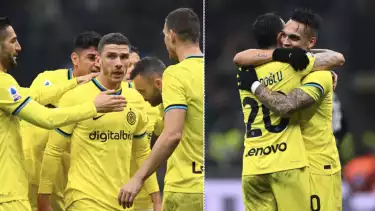 Dominasi Inter terus terjadi setelah Lautaro Martinez menyumbang gol bagi timnya menjelang akhir babak pertama. Lautaro menanduk bola sepak pojok Hakan Calhanoglu. Inter (yang memakai seragam kuning) unggul 3-1.