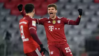 Jakarta - Pemain Bayern Muenchen Thomas Mueller merayakan penampilannya yang ke-400 di Bundesliga dengan menyarangkan satu gol dan sebuah assist saat sang juara bertahan mencukur VfL Wolfsburg 4-0 dalam laga Sabtu dini hari WIB yang memasuki jeda musim dingin dengan kokoh di puncak klasemen dalam selisih sembilan poin dari penguntit terdekatnya.