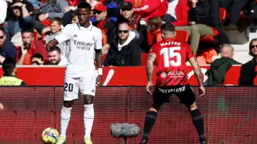 Saat akhir babak pertama, Vinicius harus mendapat teguran keras dari wasit setelah melanggar bek kanan Mallorca, Maffeo.