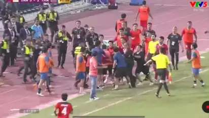 Melalui tayangan ulang, pemain dan ofisial Indonesia saling tinju dengan kubu Thailand.