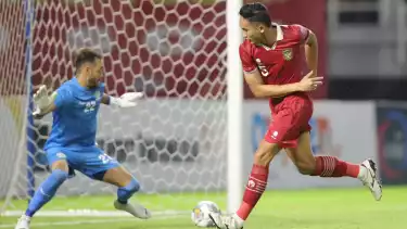 Aksi Rizky Ridho ketika bersua Palestina (dok. PSSI)
