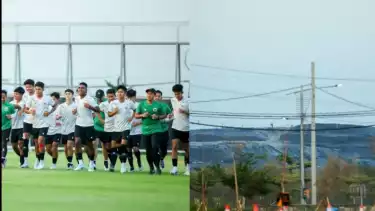 Surabaya, tvOnenews.com - Timnas Indonesia U-17 harus bergelut dengan bau sampah cukup menyengat saat menggelar sesi latihan di GBT Training Field, Minggu (12/11/2023) sore WIB.
