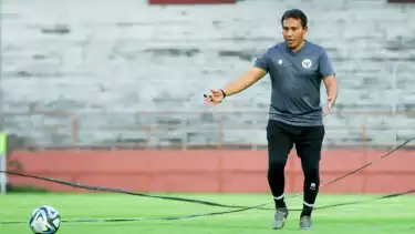 Pelatih timnas Indonesia U-17, Bima Sakti. (Julio Trisaputra/tvOnenews)