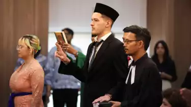 Justin Hubner mengambil sumpah dan janji setia sebagai WNI. (PSSI)