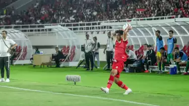 Lemparan jarak jauh Pratama Arhan. (Julio Trisaputra/tvOnenews)