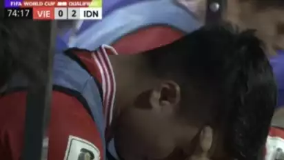 Nguyen Quang Hai yang dijuluki sebagai Lionel Messi-nya Vietnam oleh media-media setempat hanya bisa meratapi timnya dibantai oleh Timnas Indonesia.