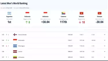 Jika melihat pada situs rangking FIFA saat ini, Timnas Indonesia berada di peringkat ke 134.