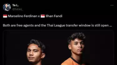 "Keduanya (Marselino dan Ilhan) berstatus bebas transfer dan jendela transfer Liga Thailand masih dibuka..," tulis Ta Lao dikutip dari akun X pribadinya, Senin (15/7/2024).