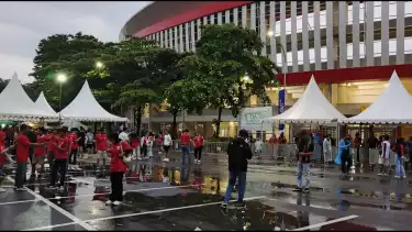 Solo, tvOnenews.com - Para supporter terlihat mulai memadati Stadion Manahan, Solo meski ditemani rintikan hujan jelang laga Timnas Indonesia kontra Filipina.
