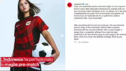 "Usai menghadirkan jersey pertama dan kedua, produsen jersei Timnas Indonesia, Erspo mengejutkan semua orang dengan dua seragam pra-pertandingan baru dengan desain unik," tulis NSS Sports.