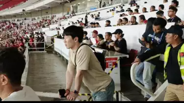 Berdasarkan pantauan tvOnenews.com di lokasi, terlihat jika ada Kim Jong-jin yang hadir langsung dan menyaksikan laga Timnas Indonesia U-23 kontra Malaysia.